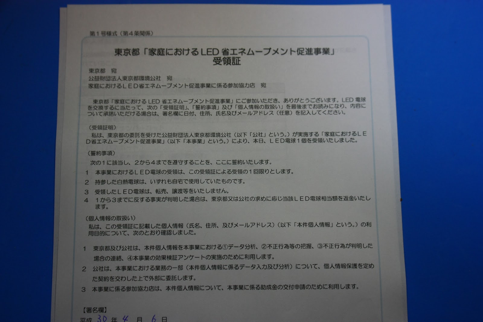 東京都の​ 地球温暖化防止推進センター ​の の一環で電球2個を持っていくと電球型LED1個と交換する事業を