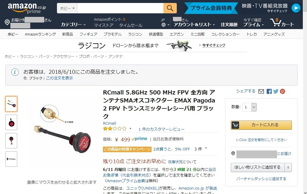 そのうちの1台はFPV用の5.8GHzだけアンテナを外付けにしています