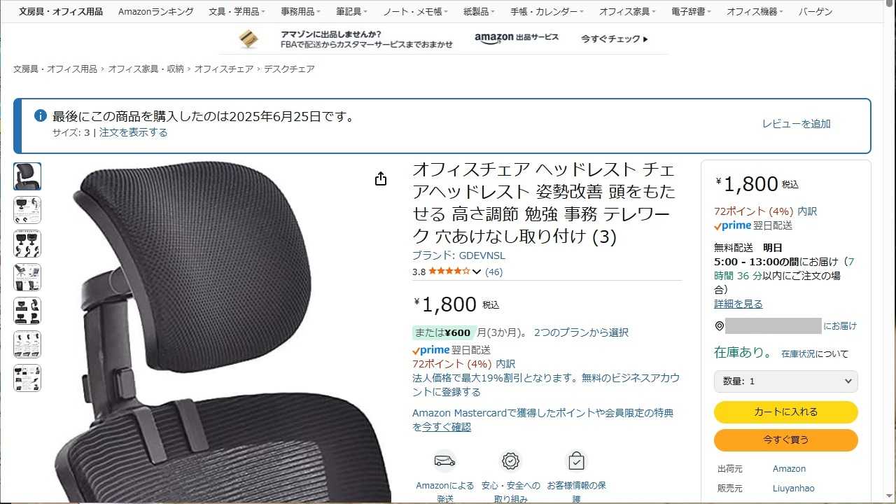 事務椅子などに取り付ける後付のヘッドレスト を見つけたんです​