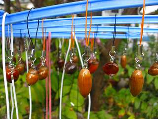 今秋は「木の実」を大量に収穫できた。今まではブローチばかり作ってきたが今年からはストラップ、ネックレス、ペンダントも作ろうと思う。今日はネットでストラップ材料を一万円ほど注文する。ネックレス作りに使おうと思っている紐類をどれにしようか迷っていてまだ決まらない。出来上がったものはできるだけ素朴で自然の味を出すことと安価なことが条件になるので難しい。