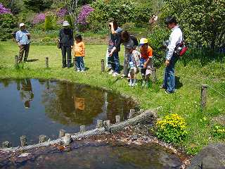 10:00時の現地待ち合わせで自然園へ向かう。少し遅れてきた家族はお祖母ちゃんと小一、年長の男の子親子4人。とても元気な子なのだが昨日は自転車でお父さんと片道24キロの「群馬の森」まで行ってきたとのことで、園内を一時間も歩くとまだ1/4くらいしか回っていないのに「疲れたー」と言い出す。
