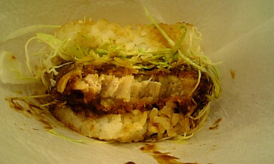 先日、日帰りで出かけたついでに食してまいりました。ず~っと「一度は食べてみたい」と思っていたモスの限定商品「味噌カツバーガー」ちょうど期間限定で「たこカツさん」もやっていました。こちらが味噌カツお行儀悪いけど食べかけでごめんなさい・・・。八丁味噌のソースがたっぷりでライスバーガーでうまかったです。 こちらが「たこカツさん」 こちらもお行儀わるいけど食べかけ・・・。タコたっぷりでした。ソースもかかってるけどマスタード(?)が少し強いかな・・・。こちらはパンとライスバーガーと選べるのですがライスバーガーにしてみました。・・・味噌カツバーガーと比べるならこっちはパンにしてもよかったかな・・・。 また中部地方へ出かける機会があったら味噌カツバーガー食べに行きたいかも~。