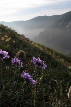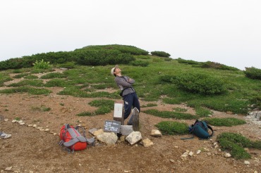 寝落ちすることが最近多いやまやろうです。家族の応対、会社での立場などが自分をネガティブな気分に追い込んでいく。荒んだ心をやさしく受け止めてくれるのはアルコールだ。いつでも、間違いなく、望みのままに気分を和らげさせてくれる。今夜はG会の集会なので、食事を手早く済ませられるようにと夕食はカレーライスであったが、実は昼の定食ではキーマカレーを食べていた。今夜のカレーは嫁がルーの個数を間違えたのか味気ない。粉チーズを鬼がけしてみる。今週末も「富山の百山」の取材山行が計画されている。参加者は少ない。天気も微妙だ。まともな写真が撮れるのであろうか。一応、チーフリーダーとして計画書は作成してみた。これまでに取材した、黒岩山・犬ヶ岳と清水岳については、文章を作成しないとならない。どちらにも参加し、写真にも文章にも経験の豊富なやまやろうが、叩き台を作る予定になっている。残る課題は、やる気をどう出すかだな。タカネマツムシソウが、朝日を待ちかねたように、頭花を光の射す方向に向ける(雪倉岳にて)。