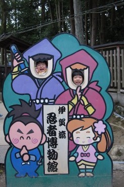 歓送迎会から無事に帰宅した後で、追加酒を飲んでしまうやまやろうです。出かけるというのに。春休み、遠出でもしてみようということで、当初は名古屋を考えていたが、むすこが忍者好きということもあり、三重県は伊賀の忍者博物館を目指すことにした。起きたら着替えて車に乗って、車中で朝食とした。まずは嫁の運転で東海北陸道を南下。ナビに言われるがままに走る。太平洋側に来ると、桜が咲いているのだよ。伊賀ではちらちらと咲き始めであったが、道中他の場所では3分割きくらいのところもあった。花見がしたい。忍者博物館は上野公園の敷地内にある。観光案内所にて地図をもらったら、折り紙手裏剣のおまけがついた。早速忍者ポーズ。入場料金を支払い、まずはタイミングが合った忍者ショーを見る。ぎりぎり入ったので会場は満席、何とか座ることができた。階段に座ったので実は一番見易いところなのだ。しゅわーと煙幕が垂れ込めると、忍者が現れた!真剣での居合い切りの決定的瞬間! よく撮れた。それから手裏剣打ち。これは棒手裏剣。よくある四方手裏剣よりも投げるのが難しい。この人は本物の忍者で、的に対して精確に当てることができていた。木の板に当たる時には予想以上に大きな音がする。刺さらずとも手裏剣が当たるだけで骨折するのだとか。手裏剣は敵に襲われた時の最後の攻撃手段として、近距離から放つものなのだとか。忍者は正体を隠して行動する。このような大道芸人に成りすますこともあるということで、その技を披露してもらった。まさに笑点(音楽流れた)。枡がくりんくりんと走っております、ありがとうございますー。レビューにもあったが、この忍者ショーは必見である。別料金であるが払ってでも見る価値はあると思う。すっかり忍者気分になったところで、子供達には修行ツアーなるものがオプションで用意されているのだ。ワンコイン500円で3つの修行が体験できる。むすこはやらないわけにはいかないだろう。1:手裏剣的当ては、手裏剣が1枚でも刺さればクリア2:毬乗せは、逆さにぶら下げた和傘に毬が乗ればクリア3:輪投げは、四方手裏剣型の枠の中に輪を通せばクリア全ての修行がクリアできたら素敵なアイテムがゲットできるのだ!理由はないが内心自信満々のむすこ。華麗に手裏剣を投げているように見えるが、じつはへろへろ投げで刺さる気配もなし。他の修行も惜しいものはあったが全てクリアできなかった。当然のようにヒーンと泣く。世の中あんたの思うようにはいきまへんて。実は大人も手裏剣打ちの体験ができるのだ。5枚で200円。鉄の手裏剣を手渡されると気分はニンニン。家にはおもちゃのダーツがあって、やまやろうは毎日それを投げているものだから調子よくタンタン当たるものと思っていた。が、いざ打ってみると斜め左下方向地面に向かって手裏剣が飛んでいった。力み過ぎですな。家族に見られるのが恥ずかしいくらいの醜態であった。それから忍者屋敷の見学。本物です。どんでん返しは180度ぴたりと壁を押さえるのが難しいみたい。隠し階段と監視場。実際は暗いので赤忍者は見えない。忍者伝承館では様々な道具が展示されている。男なら黙って撮れよ手裏剣を。こんなに種類があるのね。子供の頃、何かの本で読んだ忍者の道具の名前がばんばん出てきて懐かしかった。お土産コーナーでは、そりゃあ手裏剣(ゴム製)はマストアイテムでしょう。むすこは三方手裏剣を小遣いで買った。やまやろうも勢い欲しくなり四方手裏剣をゲット。ちなみに手裏剣はA(150円)とB(180円)があり、違いはメーカー(=ゴム硬度の違い)なのだとか。忍者を十分満喫したら、上野城を見に行った。石垣の一角では映画のロケが行われていた。石垣は高い。おそれを知らない次男坊はぬーんと覗いているぞ。天守閣と共に家族で記念撮影。やまやろうだけ逆光のように顔が暗いのは何故? 桜が沢山植えられているがまだ時季ではない。もう少ししたら大いに賑わうところなのだろう。ここだけで半日十分楽しむことができた。この後は近くの宿泊施設に向かったのだが、なかなか場所の絞込みは難しいところであった。