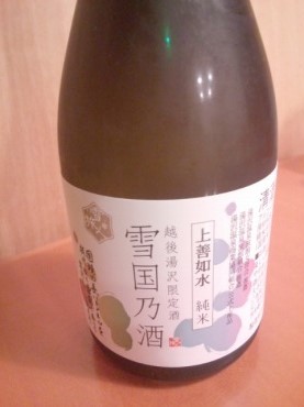 白瀧酒造(新潟・魚沼市)上善如水 純米 雪国乃酒17度以上18度未満180ml越後湯沢駅限定酒。芳醇な香り、そして口当たりは爽やかである。後味はすっと消えてまさに銘柄通り。次々と杯を重ねたくなる。また飲みたい度★★★★☆