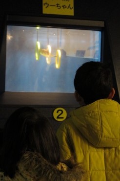 起きたら右目がごんごろんなやまやろうです。朝一で眼科に行った。目やにの多い次男坊とね。二人とも感染性の眼病ではなかったが、同じ目薬を処方された。診察時に次男坊はあびゃーんと泣いて大変だったが。どこかに連れていけとうるさいむすこのために、3人連れて魚津水族館に行った。ブログによれば、やまやろうが前回行ったのは約一年前なのか? むすこは行事で来たことがあるようだ。魚津の子供は無料なのがありがたい。入館早々、おさかなショーが始まるということで急ぐ。一匹目が進んでおり、二匹目からはじっくりと見ることができた。これは二匹目のうーちゃん(ウマズラハギ)。見事な輪くぐりを披露してくれた。ショーが終わったらすぐ横のキッズコーナーで遊び始める3人。自分の部屋のように寛いでいたぞ、どういうことだ。恒例の?身長比較をやってみた。昨年よりは伸びているのが分かった。みなさん10センチ以内ですな。それからようやく展示見学となったが、順路を無視して逆走だー。まあ怒られることはないが。ちょうど給餌タイムだったようで、水槽の上からエサが落ちてくる。このカニはがつがつ食べていて気になった。一応、生物のそばにエサを落としているようだが、ずれて落ちたり興味がなかったりして、このカニ以外のがつがつは見られなかった。どーこだ? 見事な隠れ身の術である。マツカサウオ。発光魚と判明したのは、魚津水族館が停電した時なのである。すごーい。ネットで調べてみると、見た目によらず美味しい魚らしい。波の水槽では、がちゃがちゃでエサが買えるようになっている(100円)。粒々のエサを3人で分け合ってやってみる。慎重なむすこはちまちま少しずつやったところ、魚の集まりがいまいちだ。豪快なむすめはぱっと一度にやったところ、わーっと魚が集まって壮観であった。エサは景気よく撒きましょう。もう解禁になったね。早く釣りに行かねば。昨年は大したことができなかったから、気合を入れて沢に入ってみたい。むすこがお気に入りのガラエステコーナー。人の角質を食べるガラ・ルファという魚がいて、手を水に漬けることができるのだ。こちょいがしい刺激がたまらない。むすこは両の手をきれいに食べてもらっていた。むすめはこわごわ。次男坊は捕まえようとしていた。ふれあい水槽も、むすこのお気に入り。手が届かない小さい二人は、ヒトデや巻貝をむすこに取ってもらっていた。ヒトデタワーに挑戦。微妙にうににと動くヒトデなので、次第にタワーが傾いていくのだ。最高9段でしたか。写真水槽では、気に入った魚のプレートを持って撮影することができる。海の中にいるというか何というか。バックヤードコーナーには、"幻の深海生物"ユウレイイカが展示されていた。どの辺りが幻なのか分からないが、スーパーでよく見るイカとは形が異なっているのは分かる。見ていると癒されるミズクラゲ。今回後半は駆け足で見ていたので、じっくり留まるなら半日はゆうに楽しめるはずである。やまやろうとしては、富山の河川コーナーの前でじっくりイワナやヤマメを眺めていたいものである。