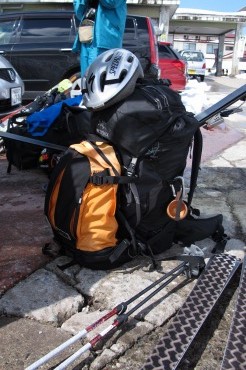 山スキーが好きな会員が集まって、一泊のスキーツアーである。本来ならば日帰りで2本のコースであるが交通費を考えたら一気にやってしまった方がお得であろうということで、車2台を使って回送まで考えた。初日は、シャルマンから放山へ登り、笹倉温泉へと下るコース。2日目は、アケビ平から昼闇山を目指すコースとした。宿は雪中キャンプで。6:30 会館発、魚津から糸魚川まで高速使用。8:00 笹倉温泉着。S竹会長の車を駐車場にデポ。ここから高みを目指すスキーヤーが多数いる。やまやろうの車に日帰り装備を詰め込んで、シャルマンを目指す。9:00 シャルマン着。登山届提出。G会書式の登山届を持ってきたが、専用の用紙にも記入を求められた。また下山報告も。以前にバックカントリーで遭難騒ぎがあり、かなり神経質になっているようである。クワッド1回500円で上部へ。パトロールにも声を掛けた。9:40 出発。まずはシールなしで滑る。前日に降雪があり雪がきれいだ。本日放山に向かうのは我々が一番である。焼山の雄姿が正面に見える。その手前を飛ぶのはスキー客を乗せたヘリコプターである。一旦窪地に滑り込み、シールを付けて登り返す。素敵な樹林の中をゆっくりと歩く。登りは少なく下りが多いのがこのコースの魅力だ。やまやろうは十数年ぶりに来たがよく覚えていないな。あの時はテレマークを始めたばかりで、ついていくだけで精一杯だったから景色を見る余裕がなかったのだろう。雲は多いが、これはだんだんと取れていく方向である。新雪の山は、何を撮っても良い絵になる。10:28 稜線。雪庇が発達している。稜線は放山の頂上まで緩やかに続いている。放山手前も良さそうな斜面だ。実際シャルマン側に下っていくコースも存在する。10:46 放山(1189m)に到着。1時間のハイクだけで後は温泉までの滑りなんて、素晴らしいコースではないか。日差しはあるものの、立ち止まって風に当たっていると寒い。後続2名も来られた。11:10 下降開始。1079mの尾根を伝っていくことにした。鉾ヶ岳、権現岳方面。こちらの斜面も魅力的であるが、下部でかつら谷に入ってしまうだろう。翌日目指す昼闇山方面。こうして見ると結構な距離がありそうだ。放山の頂上は板を外すとブーツがごぼる位の新雪であるが、稜線上は所々凍った斜面がある。風で雪が飛ばされているのだ。ゆるゆるとトラバースしながら1079m尾根を目指す。さあ、来ました。新雪を蹴散らしてテレマークの競演開始ぃ!笹倉温泉から登ってきたスキーヤーとすれ違う。そのトレースを使わせてもらった。地図を見なくても帰れる。滑りに集中できる。ヘリは大忙し。爆音を響かせながら何往復も飛んでいる。楽しい斜面はがんがん滑ってしまうから、なかなか写真が撮れないのだよ。自分が先行しないとな。Yたさんの滑り! Yたさんの滑り! この後どうなったかはご想像に任せよう。上部は雪も軽く斜度もあったので快適であった。下部は雪質が重たくなってきたぞ。スギ林の中は我慢の滑り。スギ林を抜けると田んぼに出た。笹倉温泉が見える。暑くなってきた。12:06 笹倉温泉着。駐車場まで滑り込むことができた。最高!