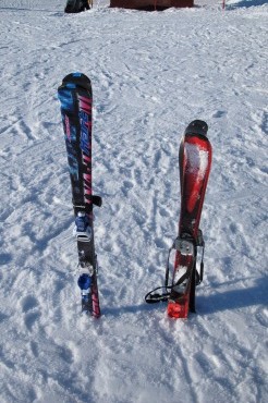 昨夜は祝杯を挙げていて、かなり飲み過ぎたやまやろうです。朝はカノジョではなく、Yたさんからのモーニングコールで起きた。ええあわすのへ行きますぞ。アルペンでむすこ用に板を買ったので滑り下ろしだ。一番安いのにした。テレマークだけでなくアルペンスキーもロッカーブームのようだ。曲げやすいのだとか。来シーズン用に少し長めの板を買ったのだが、滑り心地はどうだろう。やまやろうはファンテレである。ずっとむすこにつんだらくと思って。むすこは普通に滑ることができる。ただしファミリーゲレンデね。上に行くことを提案したが、きっぱりと拒絶された。ちょっと滑ったら昼だ。いつものわがやへ。いつものラーメン。今日のあわすのは天気が良いにも関わらず客が少ない。しかしテレマーカーはいつもより多いような感じがした。コーヒーごちそうさまです。リフトの乗り方もだんだんと慣れてきたむすこ。乗降が一人でできるようになったので、午後は一人で滑らせた。彼も集中できるのでその方が良いらしい。喜んだのはやまやろうか。ファンテレは楽しいなあ。身体を倒して雪をつかむように滑るのが面白い。ヒザを抱えて滑れば地面が近くなって速度感が増してスリリング。緩斜面ではくるくる回転、そして横綱滑り。未整地斜面にも入ってみたが、意外に短板でも滑ることができた。ファンスキーは深雪は無理だという先入観があったから喰わず嫌いだったのだ。ファンテレになったことで板の前後差ができ、前板が沈みにくくなったのだな。時々下のゲレンデに行って、むすこが無事に滑っているかを確認した。一緒にリフトに乗ろうとしたら「ひとりで乗れる」と拒否されてしまった。うえーん、父ちゃんお払い箱ですか。また少し、むすこが親離れしてしまったようで、やまやろうはちょっぴり寂しいよ。結局、リフトが止まる16時25分まで滑り続けていたむすこである。本日最後の乗客になっていた。あんたどんだけ滑れば気が済むがいね。ファミリーゲレンデ一本でよくぞここまで飽きずに滑り続けたものだ。あっぱれだよ。まあ今日がむすこの滑り収めになると思うが、身体の使い方を来シーズンまで覚えておいてね。