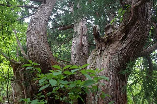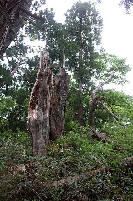登山道沿いのタテヤマスギの巨木。迫力あり。