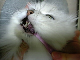 今日はせっせと書いてるのに…エラーばかりで更新できないのはどうしてですか??(実はもう3度目です!!)もう~~、今度こそはとがんばってみます!な訳で、こんにちわ~~~ところで、たぶん北の方も南の方も…春を満喫な季節がやってきたの?そう思っているやんやんろっくなんですがやんやんろっく家の『春』はあっという間に終わってしまいましたロミオを思うふうちゃんの『春』は短かったそんな感じでしょうかところで、たいていやんやんろっく家では『春』をめがけてシャンプーをしています。『春』=シャンプーの季節そんなカンジなのですが…ちょっと食欲が無いらしいんです。それこそワンちゃんのようにすべて完食な毎日だったのに~~毛玉が詰まっているのかしら~って前から心配していたので今回フードと一緒にコレ、注文しました!! ラキサトーン(毛球除去剤)愛するふうのためよ~~そう思って、今回購入したんです。一応ね、レビューをチェックすると…案外みんなおいしく食べてる?そんな印象だったので、さほど心配もしていなかったんですよ~それどころか、どんな匂い&お味なのか、興味深々…届いてまず…やんやんろっくチェーックん~~クンクンクンクン…甘い!んん~~~ペロリ…あま~~~~い!!そうそ、甘いもの大好きなふうちゃん。きっとこれなら大丈夫よそう思っていた横で、匂いを嗅いだロミオが一言…「コレ、ふうが嫌いなプリンの黒いトコの匂いするけど、大丈夫か~」あ~~~、そういわれてみればふうはね、プリン大好きだけど。カラメルの匂いが嫌いらしく、スプーンについているだけでもその匂いでイヤイヤ~~って顔するんです。仕方ないので説明書の通り、鼻の頭にベッチョリと(^▽^;)塗らせていただいた次第にございました。お味はあんまり嫌じゃなかったのかも?そう感じるお顔でした。やんやんはわかってないニャ~いつか…慣れてくれるのかしら