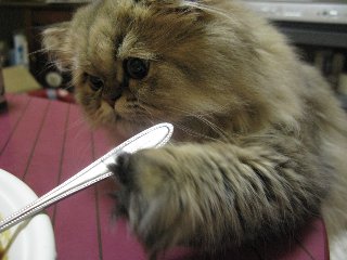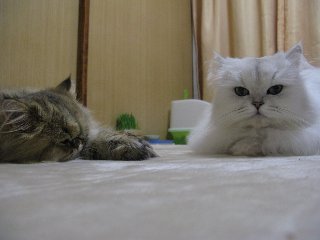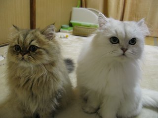 最近の2ニャンズの楽しみは…食べることノンノンの趣味である『食べる事』すっかりふうさんも影響されちゃいました。毎日毎日、もらったゴハンはもちろん完食ノンノンに至っては、ふうが残していないかどうか食べ終わった後に必ずチェックです。そしてそして、毎日ロミオや私の傍へやってきては…やんやん、おなか、すいたでしゅよちょうだいってば、ロミオォ~~~そんな感じで訴えてばかり。人間も猫も同じで~~~空腹時はイライラするようで時々ノンノン、ふうさんにバシ~なんてことになったり。そしてそして…こうなる。もちろんもちろん、ふうが先。ノンノン、まだまだ修行中だもの。仕方。ないよね、妹だしね~~~~いまに、みてて、くだしゃいよ~~仲良しになれたんじゃ、なかったのぉ~~~