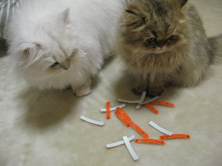 昨日は残業をして~~~お家へ帰ったら、お出迎えに来てくれ…ないですニャンズはそれぞれのお楽しみを~遅い晩ゴハンをする私のところへやってきたこの人。やんやん、おねがいが、ありましゅよ~~~食べる事が趣味のノンノン。目つきは常に。真剣そのもの。もちろんもちろん、おこぼれには与れなかった昨夜。おねだりの訴えかと思っていたら…こうだったやんやん、これ、あけて、くだしゃい。な、なんと食べるのが趣味のノンノンと~すっかりノンノンに影響されてしまったふうのために♪我が家に届いた福袋はいはい、今すぐ開けますね~めちゃたくさん、あるやんか~~~~ブログのお友達mi-mamaさん家でたくさん買った(買ってしまった?)グリニーズ。よかったらいかが~~なんてお申し出に。思いっきり甘えてしまいました(● ̄▽ ̄●;)ゞぽりぽり昨日は夜遅かったのでお味見のレポートはまた後日。歯磨きが得意なふう。きっと歯磨きを遊びと勘違いしちゃっているノンノン。そんな揉め事がないよう…と思っていたのでおいしく楽しく食べながらのデンタルケアなんて~2ニャンズにピッタリですよね♪いやいや~~~、mi-mamaさん。どうもありがとう。そそ、mi-mamaさんの所にもね、うちと同じように~~子猫ちゃんが仲間入りしたのよね♪先住猫ちゃんのみーたんとやんちゃでかわいい女の子ひめたん。ノンノンよりちょびっとだけ小さいのかな?もうすっかり猫団子な2ニャンズ。まだみーたんとひめたんに会った事ない人はぜひぜひ見に行ってね♪で、いつ、たべるの、でしゅか・・・っそっそ~~~~~ですねmi-mamaさん、本当にありがとう!これからも末永いお付き合い、宜しくおねがいしますm(__)m
