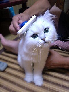 そんな感じですが、少しふうも毛が伸びてきたので、グルーミング…はあんまり好きじゃないみたい。でもね『えらいね~~~』とか、『いい子やな~~~』とか言われながらなら、毛をとかれると、なんとなく我慢できるみたい。…ホント、単純。だけど、