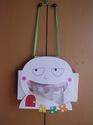やんちゃるキッズ本日はオオガーラのオブジェを工作しました。ジャーン!! オオガーラの口から、ティシュペーパーが取り出せます。上下にトイレットペーパーの芯を使用して紐でとりつけてあるので付け替えOK!何度も使えます。 *人気ブログランキング*