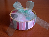 スクラップブッキングテーマは、「箱」でした。 これは、チーズの空き箱です。中を開けるとこんな感じ・・・。サークルカッターで、丸く切った写真に穴を開けて、ひもを通します。宝箱みたい!・・・ RANKING ・・・