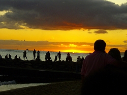 アヒアヒアヒアヒ (ahiahi)とはハワイ語で夕方・夕暮れという意味ロイヤルハワイアン→シェラトンワイキキ→ハレクラニ→アウトリガーリーフと有名ホテルと海との間にある、細い道。この細い散歩道が大好きです。遠い海を眺めたり、足元に迫る波を見たり、、有名ホテルを覗き見したり、振り向くとダイヤモンドヘッドがすごく綺麗に見えたり、夕暮れ時は空がどんどん変化していくのですごく素敵な散歩ができます。 写真はアウトリガーリーフオンザビーチ前の砂浜で、名前も知らない誰かさん達と一緒に眺めた夕日です。名前も知らない方々ですが、みんなそれぞれの思いをこの夕日に寄せていると思うと、地球を皆で共用しているのだな~とすごく巨大化した考えが芽生えるのもアヒアヒマジック 1クリックにご協力を♪↓↓↓ 夕日が沈むと・・・・アロハにアヒアヒをプラスしてアロハ アヒアヒ♪(Aloha ahiahi)こんばんはのあいさつです。