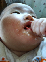 しまった.... みいなったらマグマグはむはむかみかみしてる! そりゃそのスパウトだっけ?ゴムな感じが確かに気持ちよさそうだけど... おぬし噛むから白湯が口からはみ出てびしょびしょではあらぬか。ぷんぷん(なぜかたまお風)。あわてて歯固めにちぇ~んじ!これってどうなんだろう?まあいいや。喉かわいてたらのむだろうし。けどこれ部品だけ買い足すことできんのかなぁ...今度お店いったら他のものに目が眩む前にみなきゃ(多分眩んで3歩で忘れてるとみた)。今日はパパスが移転セール。緊急用ベビーフードを買っておいた。レバーとかママもパパも好きじゃないからベビーフードで。けど...好きになられてもなぁ(のの字のの字)...みいちゃん今日は白身魚とほうれん草のBF(高野優さんはBFをボーイフレンドといっていた)やらほうれん草やらバナナやら。バナナは大好物と化した。ママが食べてると手をのばすので指でちぎってあげる。まさに猿。うきゃきゃぁ~♪それにしてもおかゆはやっぱり気分がのらないと食べてくれない。ママと一緒。みいちゃんオペラ歌手風。 あと名物の桜橋まんじゅう。また散歩帰りに寄っちゃった。創業明治30年埼玉屋小梅。同い年くらいのみうちゃんとご対面~。ちょっとおしゃべり♪ Template-すず♪♪