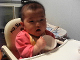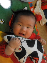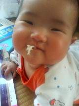 みいちゃんだいぶずりずり動くようになりました。そしてだいぶ食べてくれるようになりました。今はたいてい子供用のお茶碗半分くらいのおかゆ(一時期まったくおかゆ拒否してたくせに)とおかず。最近あまり新しいものを食べさせていなかったし、本でバナナやヨーグルトとか食べやすいもので楽しちゃいかんっていう文を読んでんじゃってことで初納豆!ママは納豆大好き。みいちゃんは?最初ん?って顔。ちょっと納豆粒粗いかな...だいじょぶだ。スプーンかじるかじる。大好きだ♪歯もないのにスプーンそこまでかまなくても...。おかずはみいちゃんの好きな大根をだしだけで炊いたもの。今日はつぶさずに5mm角位であげてみた。食べた。ただ納豆おかゆの後はちょっと嫌がって出してた。楽した後は食べません。先にちょっとあげておいて正解。けどしばらくしたらまた食べだした。食欲には勝てぬらしい。時々潰して大根の汁がでっれぇ~。納豆べったぁ~。せ....洗濯....まあいいや。なんでも食べましょよっく噛んでぇ~♪おせんべもあげる♪なんで音するの?歯がないのにさくっ♪大好きだねこれ。今度おでかけの時もってあるこう。万が一ぐずったときによさそうだ(口封じの術)。午後は何たべようか。え~とチーズとかいいんだっけ?おかゆ終わっちゃったから初うどんしてみる?う~んネタ探しにお勉強してみよ。 Template-すず♪♪