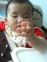 みいちゃんは最近とってもママのもぐもぐに興味津々。昨日はアイス食べてたらとっても欲しそうにするのでちょっとあげてみたらちゅっ!!※△◇☆♪!!ちめたい!ってな顔をしても一回あげてもまだ欲しがる。ちょっと押してだしてあげて食べてたけど、こんな甘いのめよ~ってママが全部食べた(ホントはおいちからそれ以上あげたくなかった)。今度はパンをかじってたらまたまたじと~っ。パン食べたことなかったよね....だってカロリー高いからご飯のがいいって保健所のお料理教室で言ってたんだもん。中身の白いところあげてみた。食べた。もちょっと食べる?食べる。そのままあなたもぐもぐ食べるね。なんかにひたさなくっていいんだっけ?ま。ちょっとならいっか。なんだっけなぁ...そいえば何か食べてたらものすごい顔で欲しい欲しい光線を発射しててママびっくり。こんなに表情がいつのまにかあったとは...(喜)。今日の夜ご飯はシラスうどんほうれん草入り(ようはこの前の青汁うどんしらす入り♪)。子供茶碗に半分位食べた。シラスやうどん自体から塩味があったのでだしだけであじつけ。ママが食べてもおいしいうどんでした(茶碗にいっぱいあったのにママもつまみぐいしちゃった)。みいちゃんノーテレビデー継続中♪ところで昨日から鼻水たらりん? お口からパンが...(焦)。両手広げて手についたうどんをグーパーグーパーでこねこねこね...(涙)。ちょっと入ってる指揮者っぽい。 Template-すず♪♪