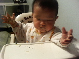 なんだっけなぁ...そいえば何か食べてたらものすごい顔で欲しい欲しい光線を発射しててママびっくり。こんなに表情がいつのまにかあったとは...(喜)。