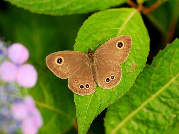 地味な翅の色に目立つ目玉模様が…(6月下旬