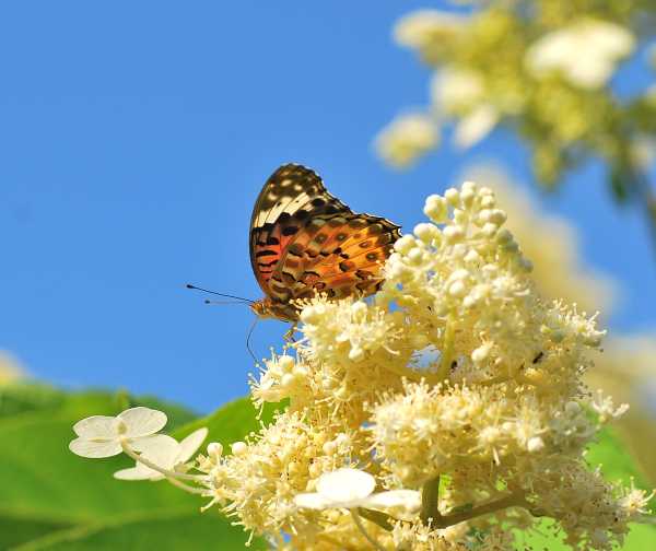 ノリウツギの花にツマグロヒョウモンがやって来た