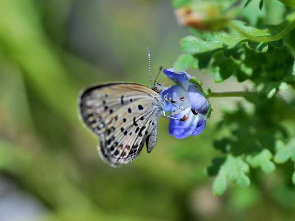 先日まで咲いていたネモフィラにシジミチョウがやって来た(7月上旬)