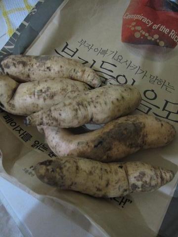 韓国土産で 白いさつまいもをもらいました~ 味は薄いです。 あんまり甘くなくて さつまいもみたいなので 天ぷらとかのが良かったかも?^^;;