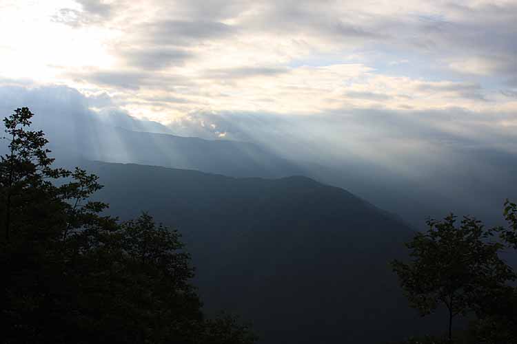 8月14日、しらびそ高原の朝、雲間から太陽がさし込み神秘的でした。ここで先日買ったラジオを出しチューニングしてみました。FM京都と、FM豊橋が聴けました。