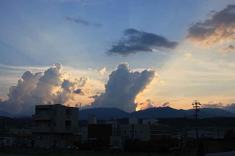 りんご並木で空を見たら夕焼けになるかな?という雲でしたアピタの屋上へ行ってみました。東の空には、西の空は夕焼けという訳ではありませんでしたが、綺麗な空でした。今日も雨があがって暑くなりましたね。みなさん、体調壊さないように気を付けてくださいね。