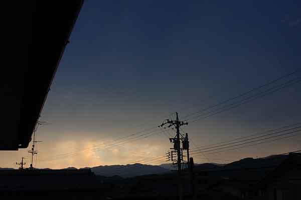 今日の夕方はこんな天気でしたね。全天黒い雲で山の付近だけ夕焼けでした。写真でこの色が思ったように出ないです。m(__)m修行不足ですm(__)m変な雲最初山かと思いました。