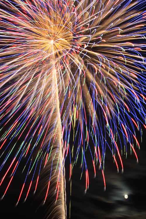 阿島の花火です。花火の写真は相変わらず難しいです。今、点滅しながら光るタイプの花火が出来て、それは写真にすると、点々・・・と写るから、×です。