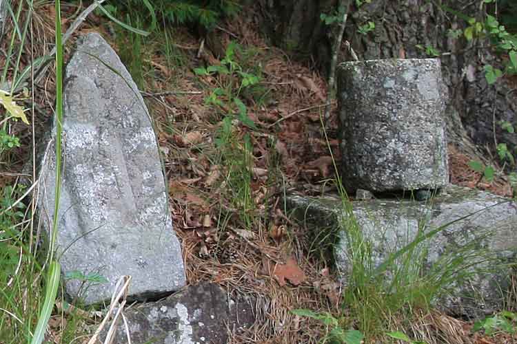 秋葉街道には観音様が沢山有るんですね。右の円筒形の石は、南信州で珍しい円錐形の道しるべなのだそうです。卯月山付近から飯田市街方面。夏は視界が悪いですね。少しだけですけど、標高が高い場所はぐんと涼しくなります。今夜は雨、嬉しい雨ですね。