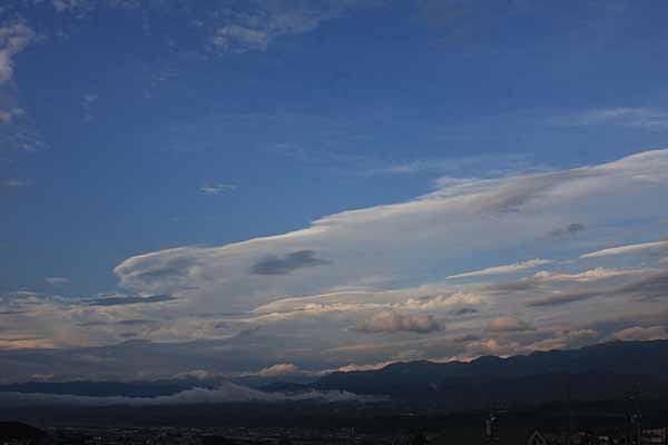 今日は帰宅途中に鼎のアピタ屋上に寄ってみました。今日は雷雨が凄かったからか、独特な雲が沢山でした。東方面の空です。夕日。そして雲が巻きつく風越山。これから一雨毎に涼しくなっていく季節になりましたね。まだまだ残暑が続くのでしょうが、信州は夜涼しくなるから、ぐんと過ごしやすくなりますね。