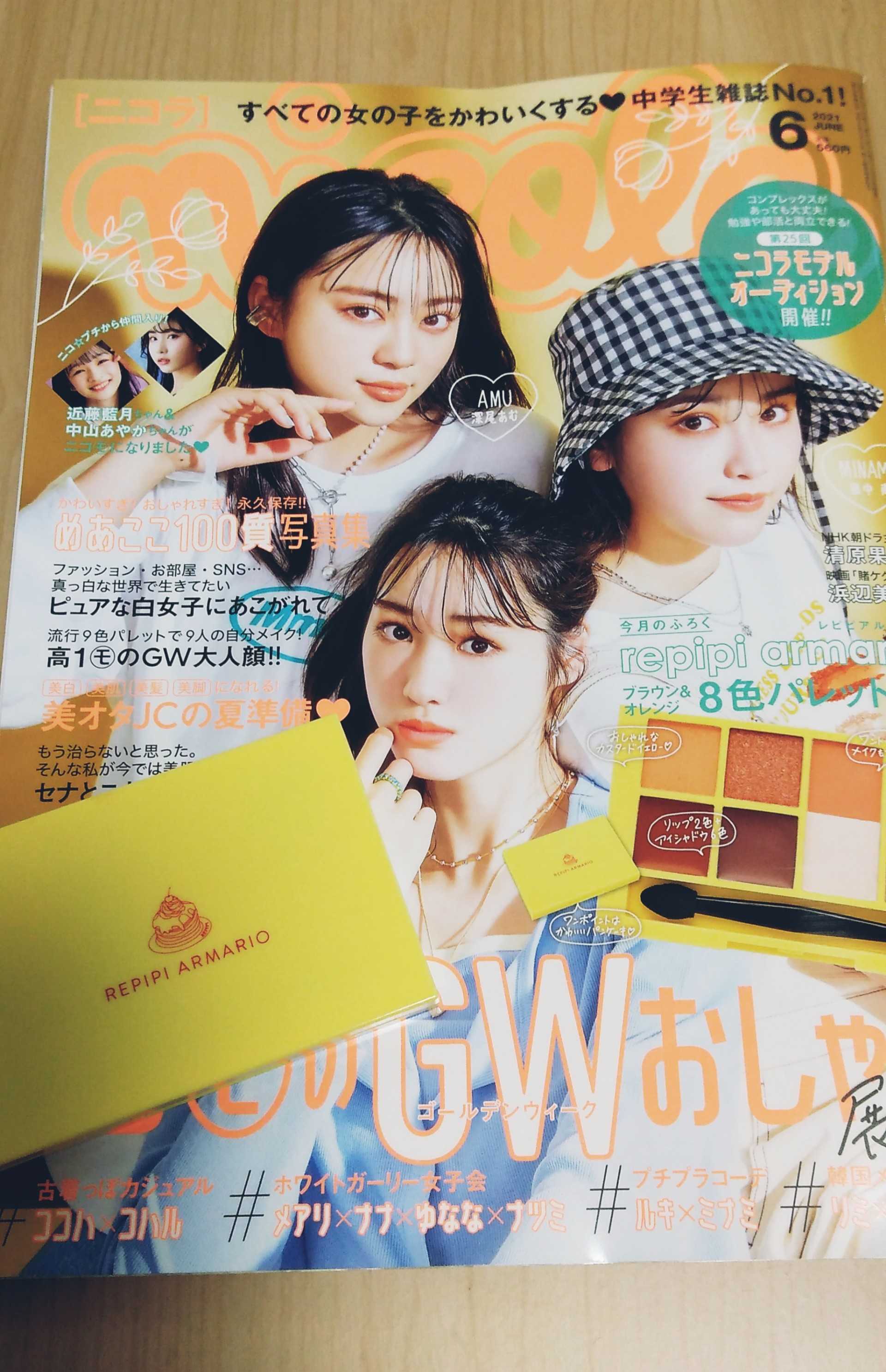 昨日、ニコラの6月号買いましたぁ💖 付録のアイシャドウパレットは、見た目が以外と小さかったけど、中身は思った以上に満足でした😍