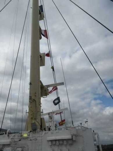 甲板に出て、見上げるとメインのマストが空に伸びています。