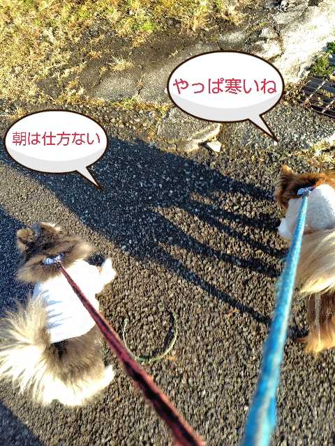 昨日は風が強くて、予報では木枯らし1号が吹くでしょう・・・って言ってたからてっきりそれでかぁって思ってたら違ったらしいね いい天気だったから風があってもそう寒くもなかったね 散歩行けてよかったね えへっ ごめんね 朝ご飯しようね 話題がなくて申し訳ないです