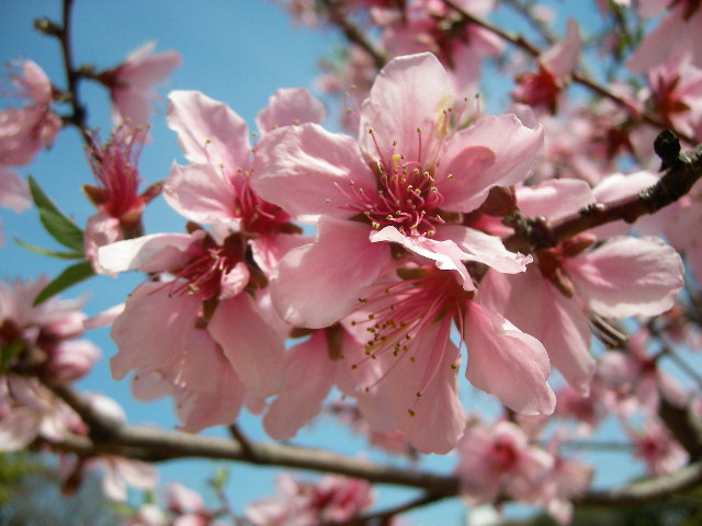 大阪造幣局から銀橋を渡った大川沿いに桜並木が続く桜ノ宮公園があります。その中に大阪経済の基礎を築いた実業家、藤田伝三郎男爵とその子息の元邸宅のお庭があります。モモの可愛らしい花が満開でした。