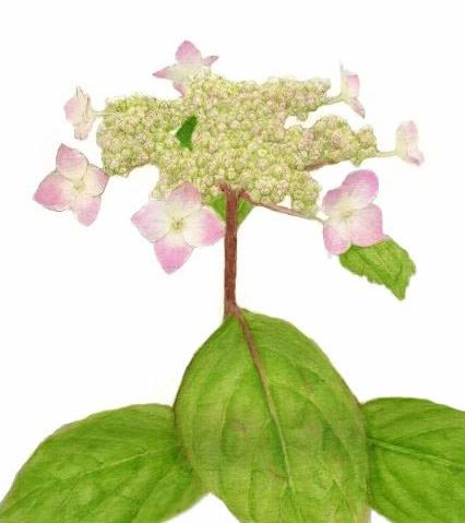真幸くませの紅そうびさんのもうすぐ1234日めクイズで描いていただいたカタクリの絵です。 そしてこちらはヤマアジサイの絵です。 とても細かなところまで描いていただいてとてもうれしいです。どうもありがとうございました。