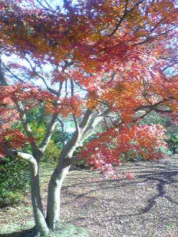 周りはもう冬化粧、ほとんど葉も落ちていますがこれから紅葉のようです。まだ青い木もあります。でもいい気分になれます。