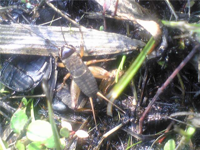 コオロギ , 台湾 , タイワンエンマコオロギ :コオロギの幼生が出てきた。タイワンエンマコウロギだろう。昔はエンマコオロギの方が多かったが、温暖化もあってか、台湾にいたタイワンエンマコウロギが上陸してきて広まったようだ。ただ区別がほとんどつかない。大きなコオロギだ。