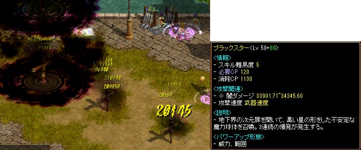 スキル上げ途中を差し引いてもブラックスターとくらべ、威力がだいぶ低いけど発射後即ダメージなので使い勝手は良好