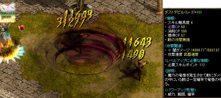 範囲も微妙・威力も微妙(なぜか表記ダメより大幅に低い)・1匹に対して1HITと明らかにコレジャナイ感半端ないスキル