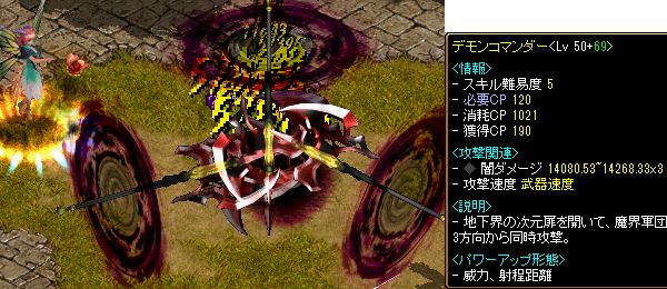 単発範囲攻撃(2HITにみえるのはダークエンチャントを使用しているから)