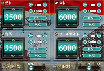 資源はまだイベ公示ないから備蓄に走る時期でもないので大型建造に挑戦