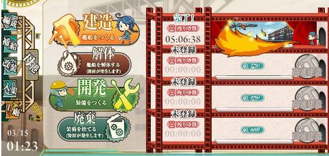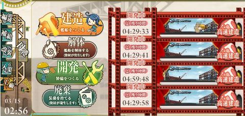今週は3回回せるまで物資が貯まっていたのですが1回目で出たのでとりあえず使う予定だった資源・資材を最低投入で8連発