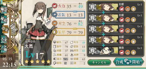 大鳳ちゃんは改までかなりのレベルが必要なので即育成