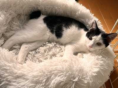 午前中に白黒ハチワレ子ねこ「なみ」ちゃん