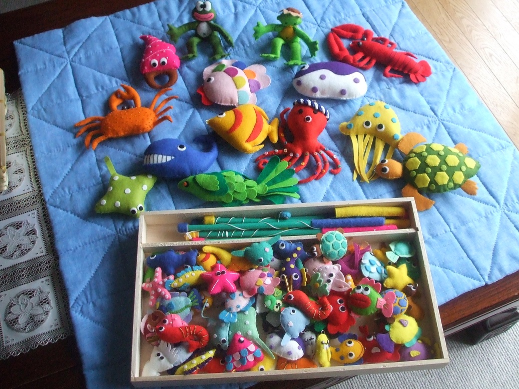 フエルトの色をふんだんに使った小さいおさかな~