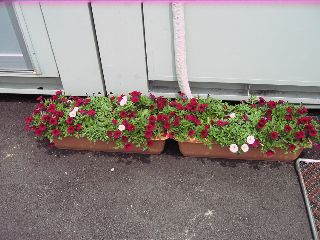 事務所のペチュニアとサフィニアをまたまた切り戻しました。また綺麗に咲いてくれるか・・・楽しみに待ちます。朝顔(オーシャンブルー)は、上のほうばっかりですが咲き始めました。